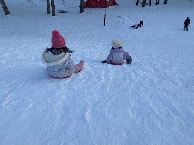 その後の自由遊びでは、そり滑りを何度も楽しんだり、雪合戦をしたりと元気に遊んでいました🤗